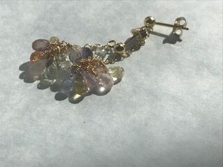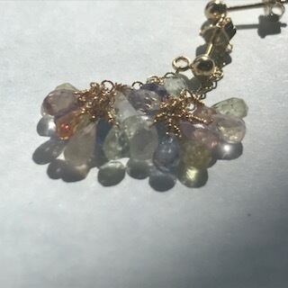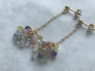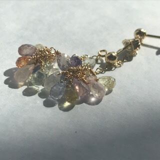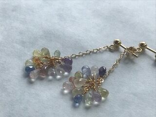 クリアな光の美しいマルチカラーサファイアのピアス