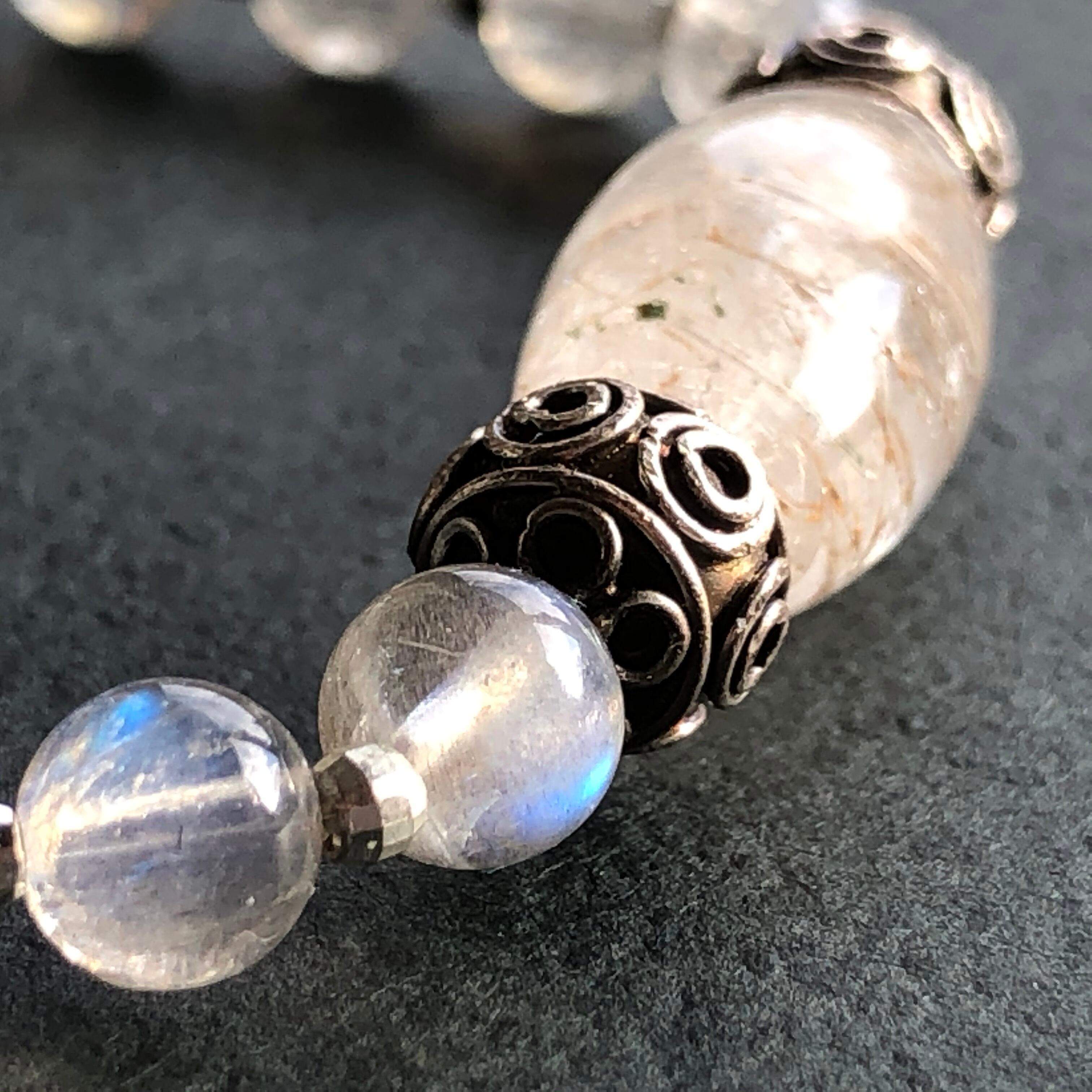 そしてその中からインクルージョンやビーズそのものの美しい粒を選び一つ一つを手で繋いだ大切な一品を創り出しています