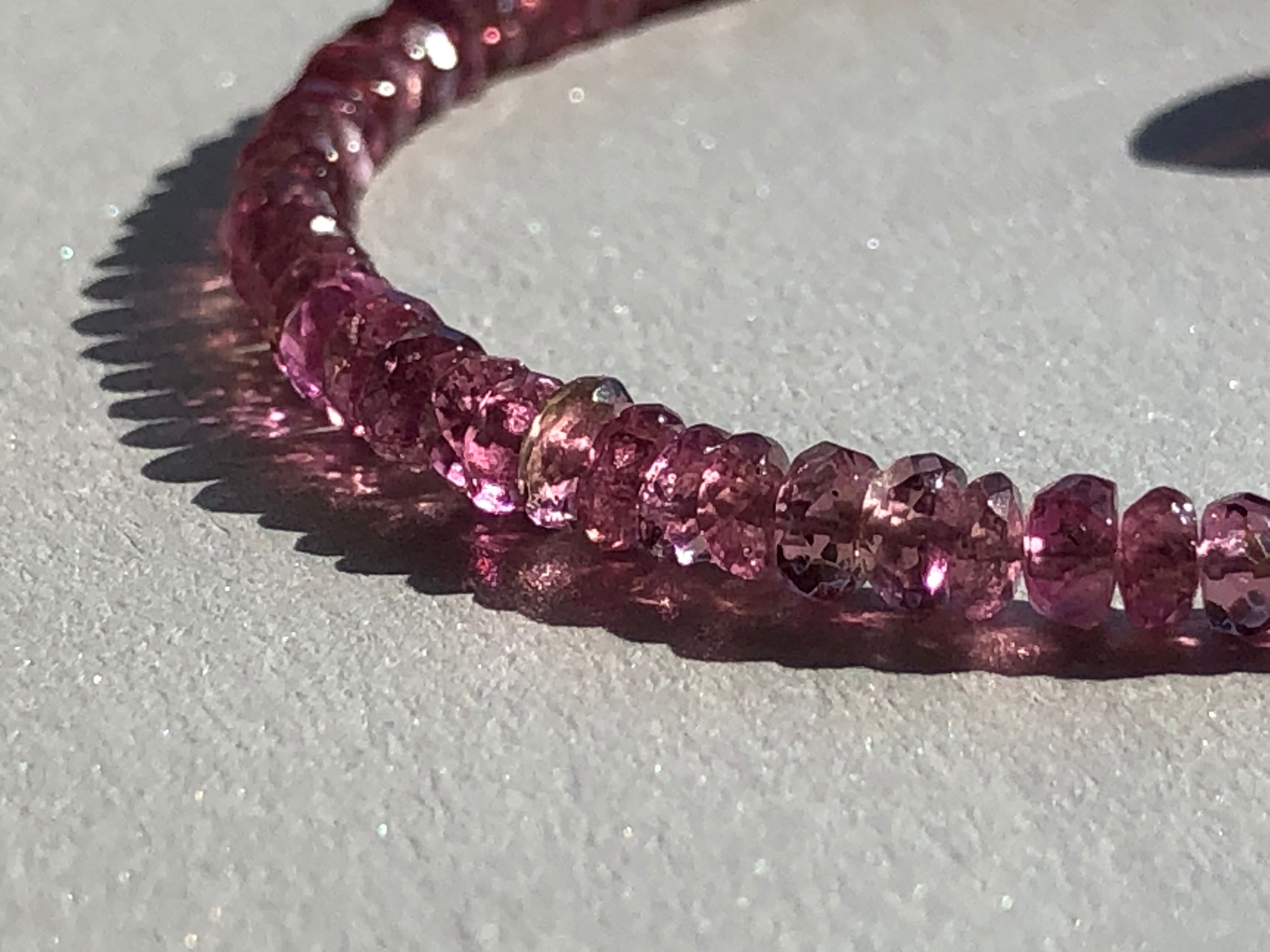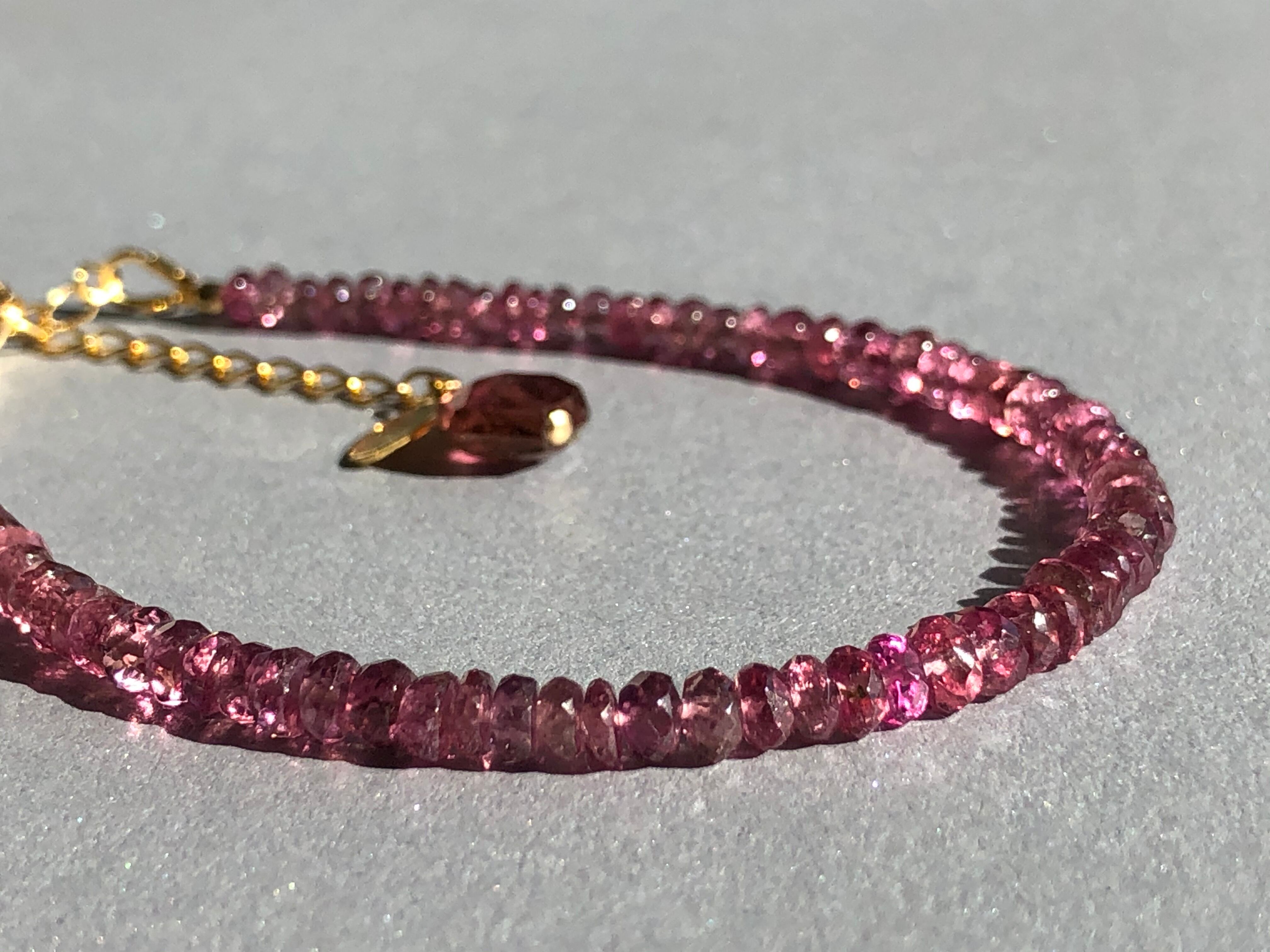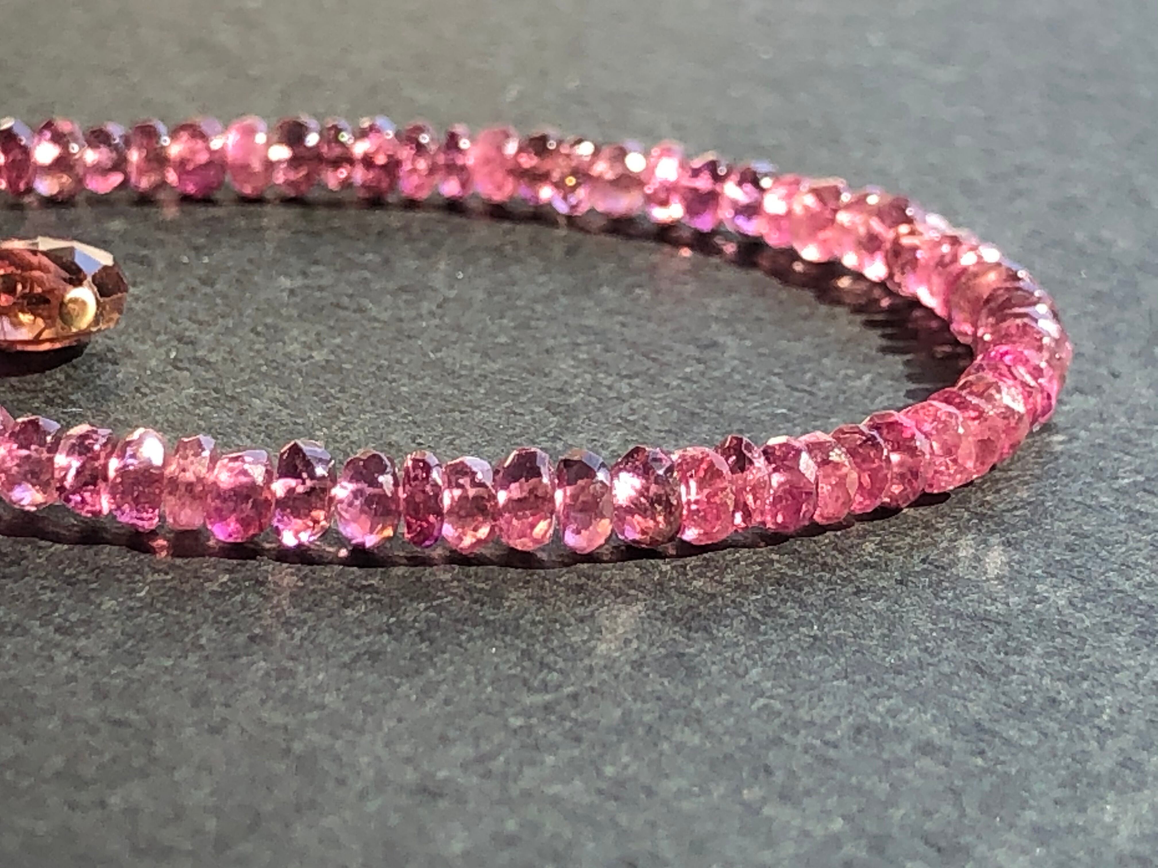 宝石質のボタンカット 透明なピンクが美しいトルマリンのブレス