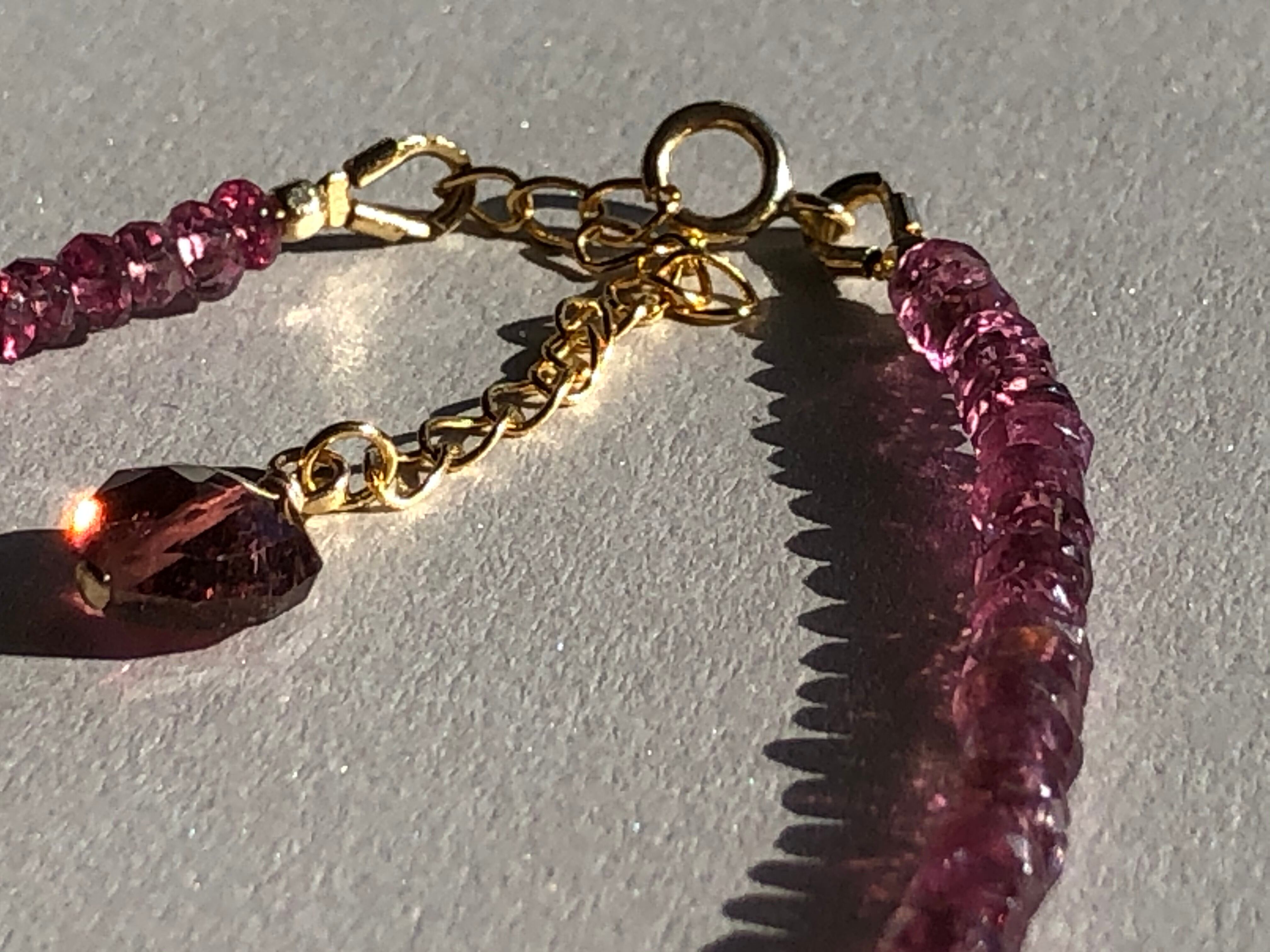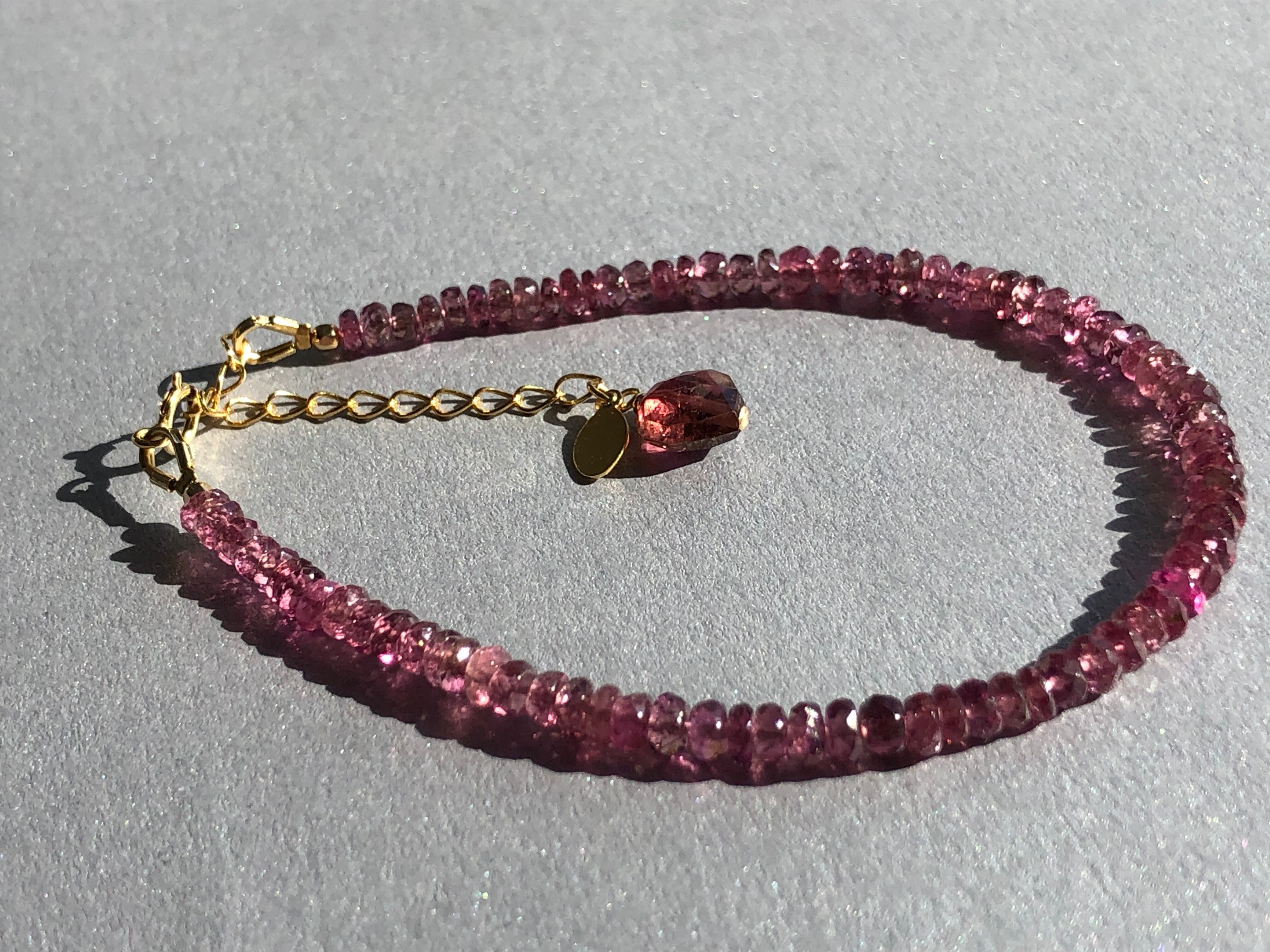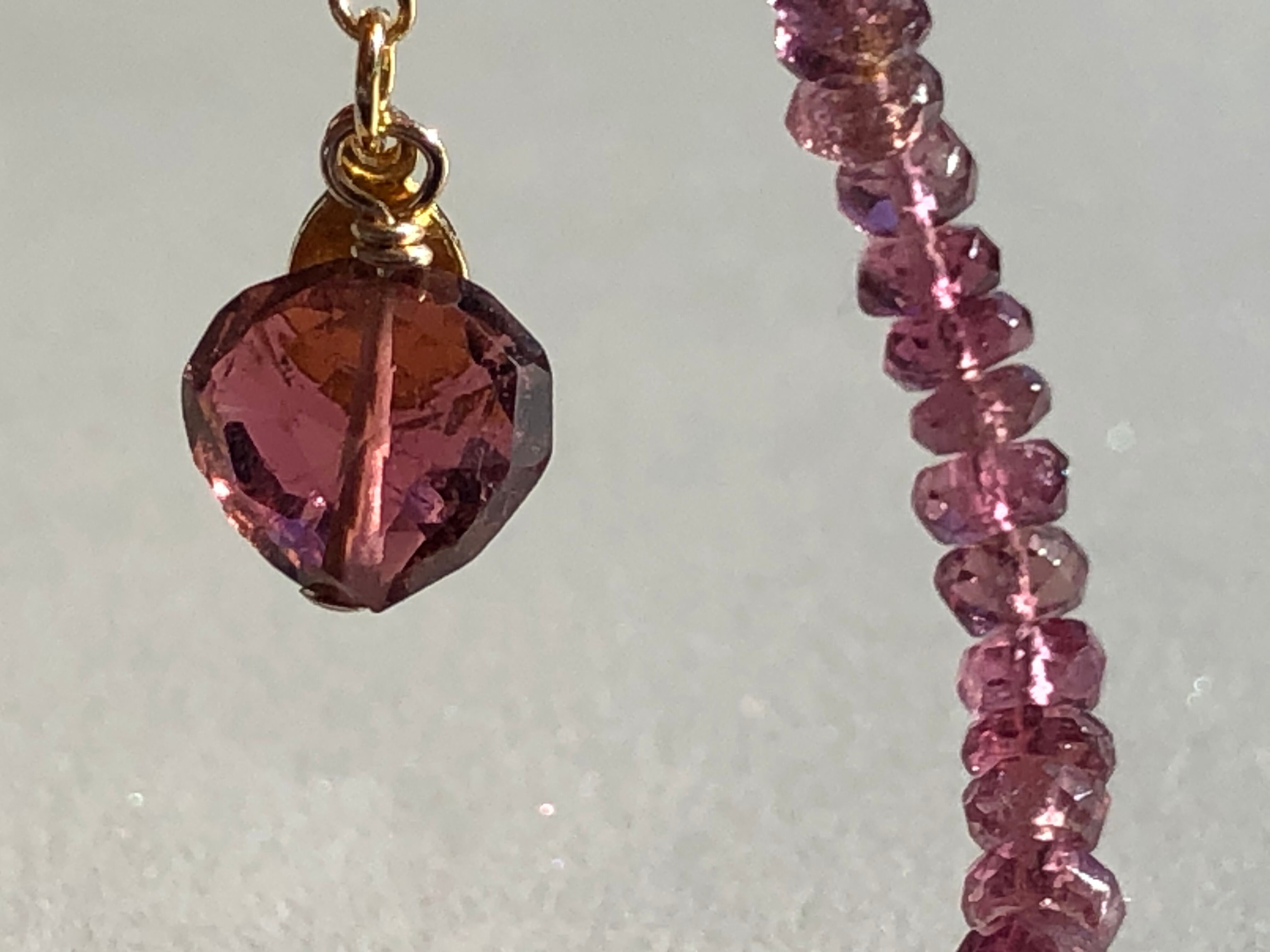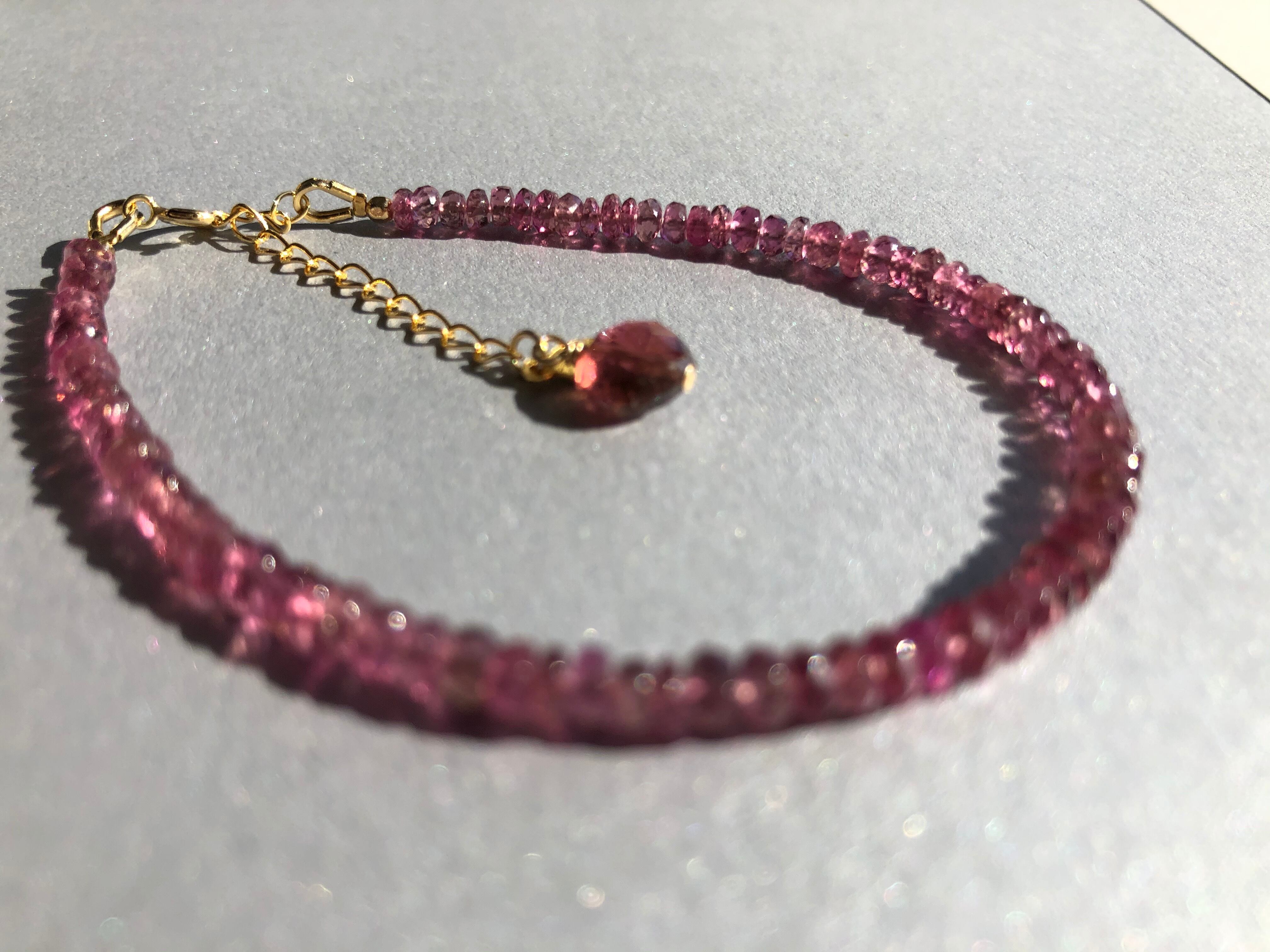 宝石質のボタンカット 透明なピンクが美しいトルマリンのブレス