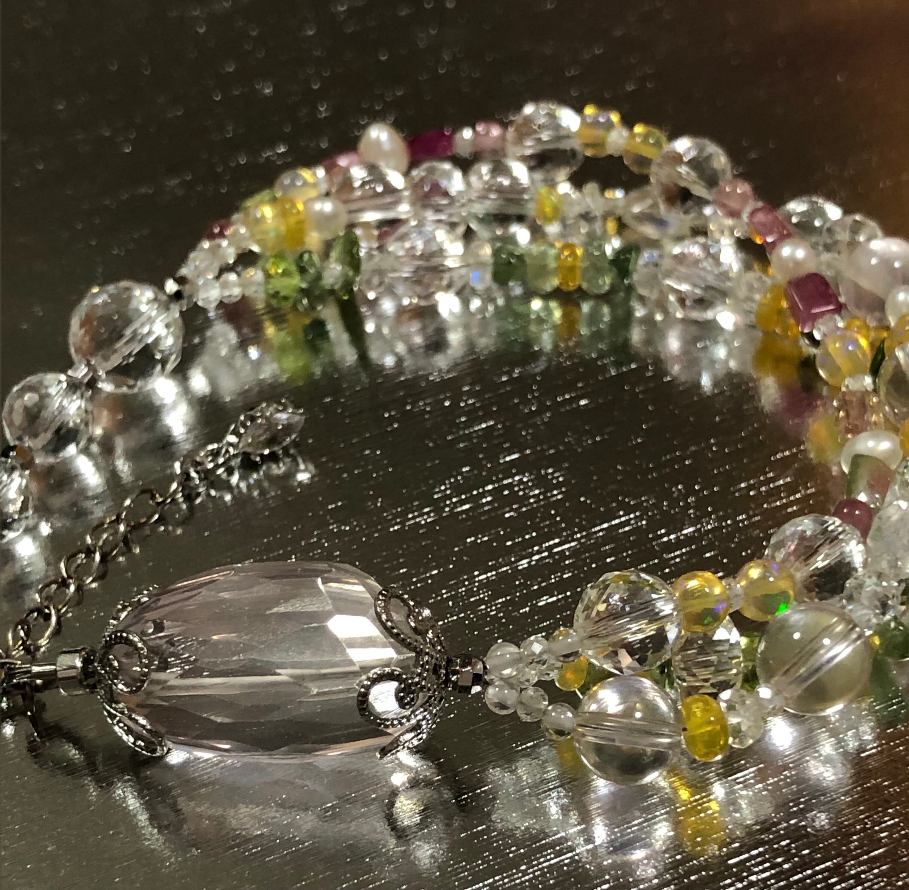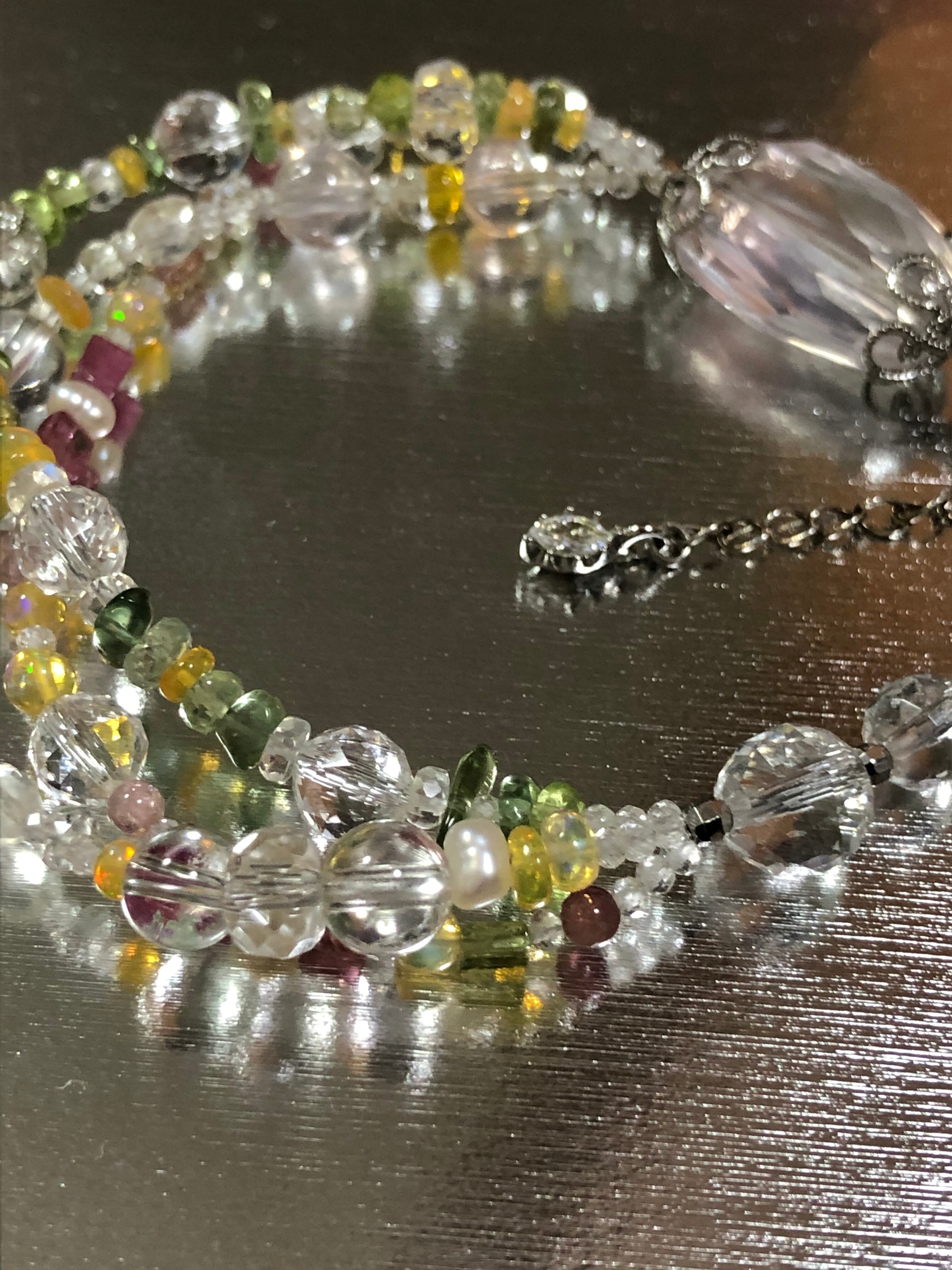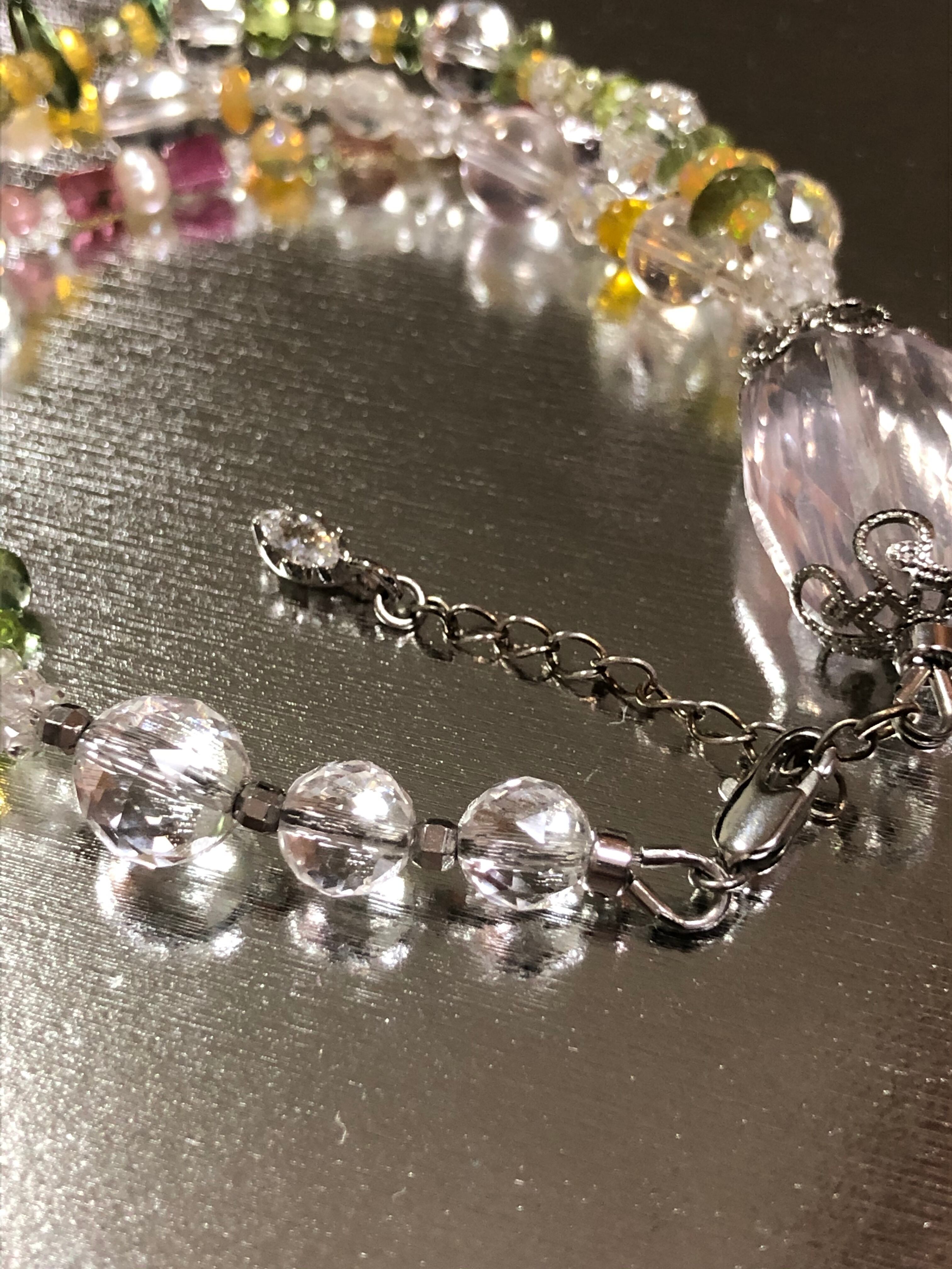 rose quartz &clear topaz & tourmaline(pink.green) & peridot & peristerite & opal & pearl & rock crystal